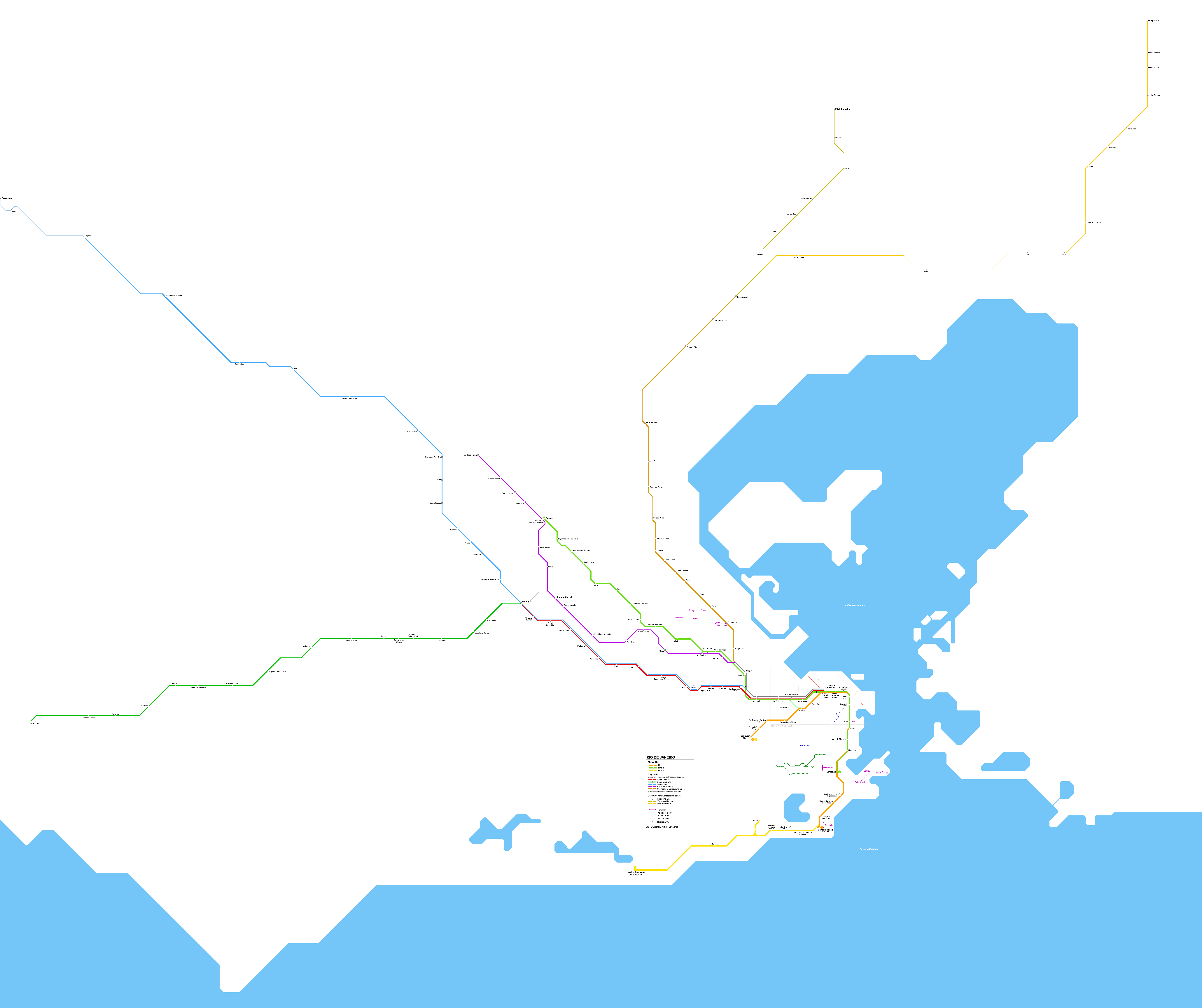 With more than 11 million inhabitants in the metropolitan area, Rio de Janeiro has a small metro network consisting of three overlapping lines. The metro network, which has 1,600 mm gauge, is complemented by several suburban rail lines (SuperVia) running north and west from the city centre.