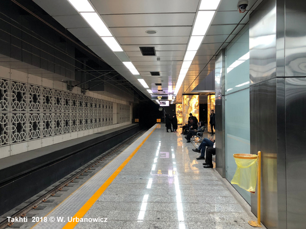Isfahan (Esfahan) lies in central Iran, some 400 km south of Tehran, and has a metropolitan population of more than 2 million. The North-South Line alignment was designed through the city centre from a terminal and depot near the existing Kaveh intercity bus terminal to the Soffeh intercity bus terminal. It runs along the wide Chahrbagh Boulevard. The total length of this section is 12.5 kilometres, with 12.0 kilometres underground. This line has been under construction since 2001, and was meant for completion in 2005 from Kaveh to Imam Hossein (4.7 km). The remaining 7.8 km section from Imam Hossein station to Soffeh station was supposed to be finished by 2007. Later the project was expanded with a northwestern extension to Qods (Pasdaran), with the Qods - Shohada section now finally opened in Sept. 2015. The line is being built by cut-and cover, except for the Shohada - Azadi section, which is excavated by tunnelling machines. |