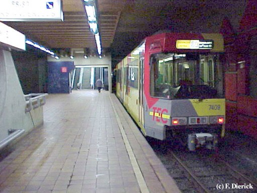Anderlues - Charleroi (anti-clockwise loop) After the completion of the tram-like Gosselies branch (7.2 km), the total length of the network is approx. 35 km. There are 22 full metro stations, of which 12 are underground. There are underground loops at Beaux Arts and Waterloo, the latter being used by outbound line M4 trains during normal service. The 'métro léger' (light metro) is operated by TEC, a company responsible for all public transport in Wallonie, the French-speaking part of Belgium.
