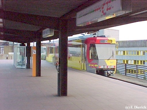 The Charleroi Metro is a typical prémétro network, i.e. trams that run underground in the city centre and on viaducts or separate right-of-way through outer parts (similar to German Stadtbahn systems). In the 1970's a large network (52 km with 69 stations) was planned to be finished by the mid-1990's. Starting from a loop around the city centre, 8 branches were to cover the entire metropolitan area of Charleroi. But due to unknown problems, construction was suspended leaving a rather unfinished network, although in 2012, the city centre circle was completed and in 2013, a tram-like leg to Gosselies was added. A first section was taken into service in 1983 (Gare Centrale - Beaux-Arts - Dampremy). Until 2011, a 25-km network was served by 4 tram routes (54, 55, 88, 89). With the completion of the central loop (0.9 km) and the extension to Soleilmont (1.8 km) in February 2012, the then 28-km network was restructured: M1: