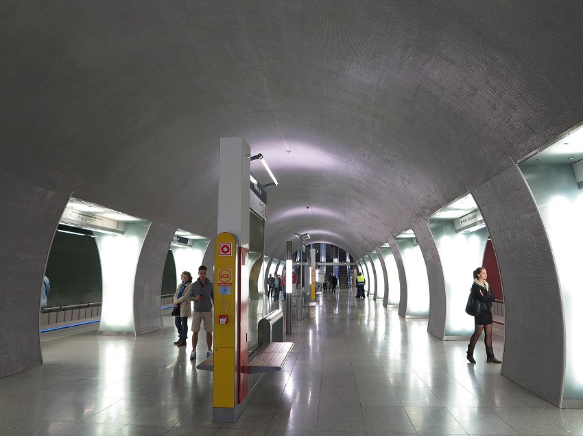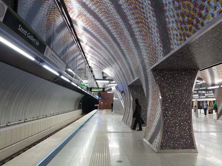 This has the most disputed metro line in Budapest. This line even appear on the first Budapest (heavy) metro line plan maps - heavy metro because there were many plans in Austria-Hungary related to the small underground [today M1], which were very different from the socialist metro plans). The first plans to begin the constructions of M4 were started in the early 1970s. In these plans this metro line would have run between Rákospalota residential district (lakótelep) and the industrial zone Budafok. The start of construction was planned for 1978, but it was cancelled. There were many plans and ideas after this. There were plans for French rubber-tyre metro or even with Ganz-Hunslet G5 type trains, a prototype Hungarian made train which had run between 1995-2000 on line 3. Gábor Demszky, mayor of Budapest between 1990-2010, opted for a French-style metro, because he didn't want to build a Russian-style metro. All his election campaigns were based on the construction of the 4th metro line. The implementation plans had been completed by 1996, and the metro line was to be build with 70% EIB debt. This plan contained a station at Kosztolányi Dezsö tér instead of Bocskai út, because there was a Volánbusz coach station at that time. Later this bus station moved to Kelenföldi pályaudvar. In 1997, tram lines 44 and 67 were abandoned due to the M4 plans. There were plans to abandon also tram lines 41, 47 and 49, but after the opening of the metro line. In 1998, the governemt of Fidesz party cancelled the metro project, because they considered it a luxury project. In 2002 and in 2006, MSZP won the elections, and they continued the plans. After all, this metro line could be constructed from EU funds. In 2003 and 2004, two underpasses were built due to metro4 plans, at Móricz Zsigmond körtér and Bocskai út. In 2005 there was a new entrance built for the metro line 2 station at Keleti pályaudvar. The TBMs for M4 were eventually launched in 2006. There were many problems during the constructions, e.g. the TMB had to stop at Gellért tér, because Fövám tér wasn't ready to take the cutterheads. There were plans to continue the line to Bosnyák tér, but when Fidesz won the elections in 2010, the leaders of Budapest decided not to continue with this extension. Nowadays, the mayor of Budapest István Tarlós is talking about an extension at the other end of the line, to Gazdagrét. This is not a new idea, it was also part of the 1996 plans, but the former government always wanted to build towards Bosnyák tér first. Some