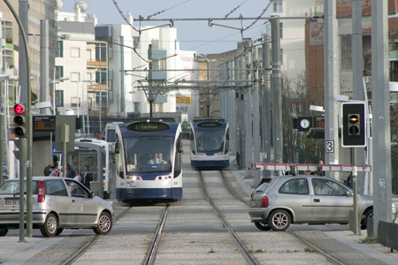Almada (~ 170,000 inh.), located near Lisbon, on the south shore of the Tagus River. Metro do Sul do Tejo -