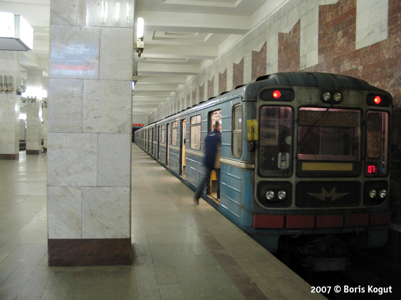 The first section of the first line (Avtozavodskaya Line, later Gor'kovsko-Avtozavodskaya Line, since 2021 Avtozavodsko-Nagornaya Line) of the Nizhniy Novgorod metro opened on 20 November 1985 - from Moskovskaya to Proletarskaya. In 1986 it was extended to Avtozavodskaya and Komsomol'skaya and in 1987 to Kirovskaya and Park Kul'tury. The first part of the second line (Sormovskaya Line, now Sormovsko-Meshcherskaya Line) began service on 20 December 1993 - from Moskovskaya to Kanavinskaya and Burnakovskaya. After some delays, the section Burnakovskaya - Burevestnik (1.2 km) finally opened in Sept. 2002. This is the only station so far with side platforms, it lies just below street level. Trains coming from the Avtozavodskaya Line used to continue their journey on the Sormovskaya Line, which is operated on the left side, by reversing direction at Moskovskaya. When the Avtozavodskaya Line was extended across the Oka River (3.4 km) on a new combined metro/road bridge into the old city centre in Nov. 2012, the two lines were meant to be operated separately. But with no reversing facility available for the Sormovskaya Line beyond Moskovskaya, the full separation was only possibe in June 2018 when the line was extended to Strelka just in time for the FIFA World Cup for which a new stadium had been built in that area. Cross-platform interchange is provided at Moskovskaya. Avtozavodsko-Nagornaya