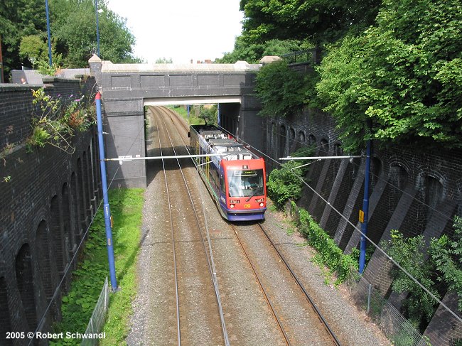 The Birmingham West Midlands Metro opened on 31 May 1999 and is the first of a planned 3-line network of a modern metro-tram, i.e. similar to a German Stadtbahn it runs partly on streets. The original Line 1 was 20.4 km long and started at Snow Hill railway station in the centre of Birmingham. It uses an old railway alignment for about 18 km through Wednesbury and West Bromwich towards Wolverhampton. The final 2.4 km after Priestfield station in this city is along Bilston Road where it shares its right-of-way with road traffic up to its Wolverhampton terminus at St. George's. All the stops have 30 cm high platforms which provide stepless access into the low-floor vehicles. By mid-2015, all original Ansaldobreda T69 vehicles had been replaced by new CAF Urbos trams. In Dec. 2015, the original Snow Hill terminus was abandoned and replaced with a new stop further north, and the line diverted via a ramp to Bull Street from where trams finally started to run through the city centre down to the city's main railway station New Street (Grand Central).